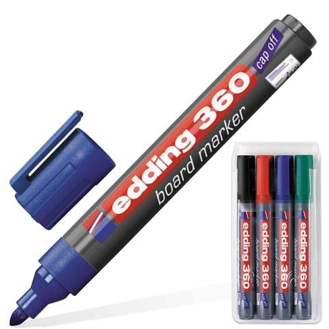 Маркеры стираемые для белой доски НАБОР 4 ЦВЕТА, EDDING "360", 1,5-3 мм, E-360 / 4S