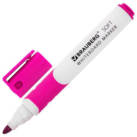Маркер стираемый для белой доски РОЗОВЫЙ, BRAUBERG "SOFT", 5 мм, резиновая вставка, 152110