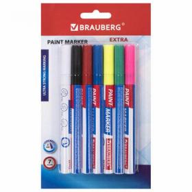 Маркер-краска лаковый EXTRA (paint marker) 2 мм, НАБОР 7 цветов, УСИЛЕННАЯ НИТРО-ОСНОВА, BRAUBERG, 151996