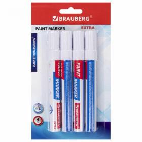 Маркер-краска лаковый EXTRA (paint marker) 4 мм, БЕЛЫЕ, НАБОР 4 шт., УСИЛЕННАЯ НИТРО-ОСНОВА, BRAUBERG, 152000