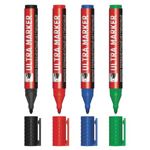 Маркеры перманентные BRAUBERG ULTRA MARKER, НАБОР 4 ЦВЕТА, круглый наконечник 3,5 мм, 152208