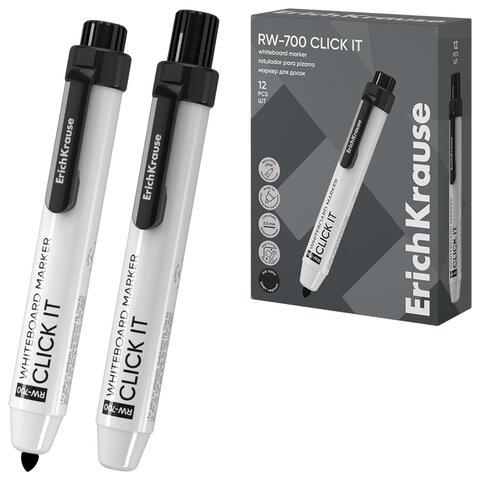 Маркер стираемый для белой доски автоматический ERICH KRAUSE RW-700 "Click it", ЧЕРНЫЙ, 2 мм, 60830
