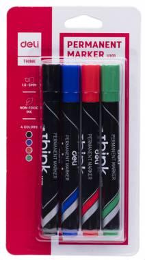 Набор маркеров перманентных Deli EU10101 4 цвет. 1.5-5 мм скошенный пишущий наконечник
