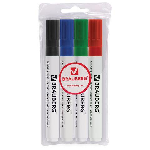 Маркеры стираемые для белой доски НАБОР 4 ЦВЕТА, BRAUBERG "ORIGINAL", 3 мм, 152120