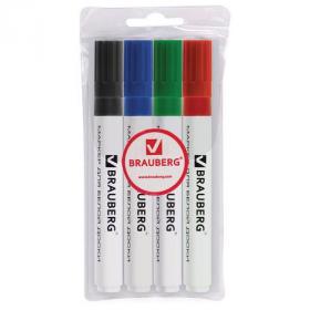Маркеры стираемые для белой доски НАБОР 4 ЦВЕТА, BRAUBERG, 5 мм, 150417
