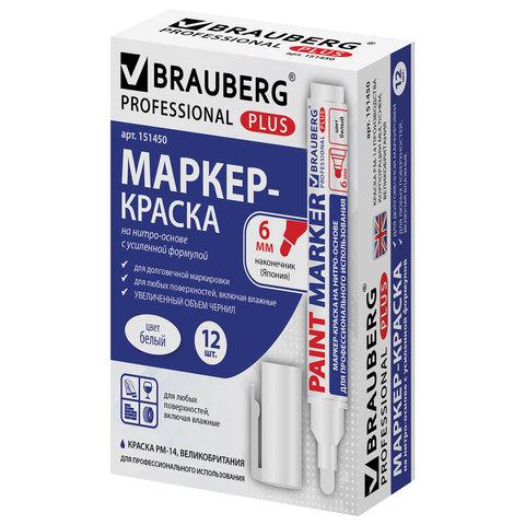 Маркер-краска лаковый (paint marker) 6 мм, БЕЛЫЙ, НИТРО-ОСНОВА, BRAUBERG PROFESSIONAL PLUS EXTRA, 151450