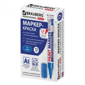 Маркер-краска лаковый (paint marker) 4 мм, СИНИЙ, НИТРО-ОСНОВА, алюминиевый корпус, BRAUBERG PROFESSIONAL PLUS, 151447