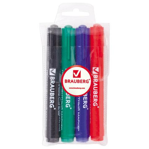 Маркеры перманентные BRAUBERG "Classic", НАБОР 4 ЦВЕТА, круглый наконечник, 3 мм, 150299
