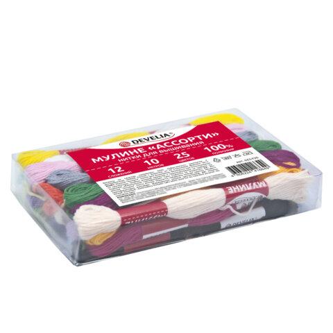 Нитки для вышивания (мулине), набор 25 цветов, 10 м, полиэфир, DEVELIA (Девелиа), 665430