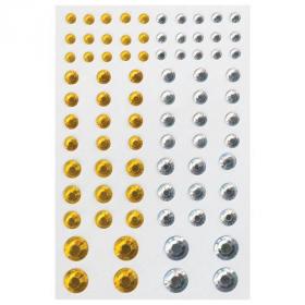 Стразы самоклеящиеся "Круглые", 6-15 мм, 80 шт., цвет золотой / серебристый, на подложке, ОСТРОВ СОКРОВИЩ, 661390