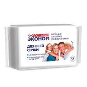 Салфетки влажные, 70 шт., для всей семьи, SMART ЭКОНОМ, 30024