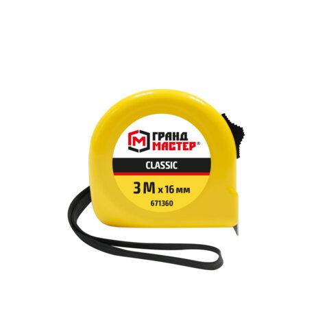 Рулетка измерительная 3 м х 16 мм, пластиковый корпус, с фиксатором, ГРАНДМАСТЕР Classic, 671360