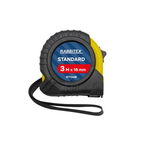 Рулетка измерительная 3 м х 16 мм, обрезиненный корпус, с фиксатором, RABBITEX (РАББИТЕКС) Standard, 671348