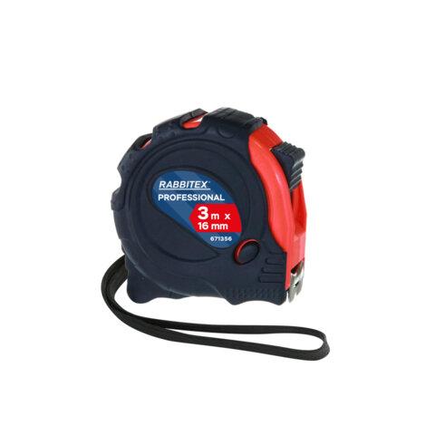 Рулетка измерительная 3 м х 16 мм, обрезиненный корпус, 3 фиксатора, RABBITEX (РАББИТЕКС) Professional, 671356