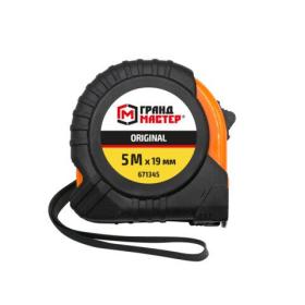 Рулетка измерительная 5 м х 19 мм, обрезиненный корпус, с фиксатором, ГРАНДМАСТЕР Original, 671345