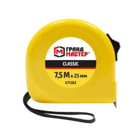 Рулетка измерительная 7,5 м х 25 мм, пластиковый корпус, с фиксатором, ГРАНДМАСТЕР Classic, 671362