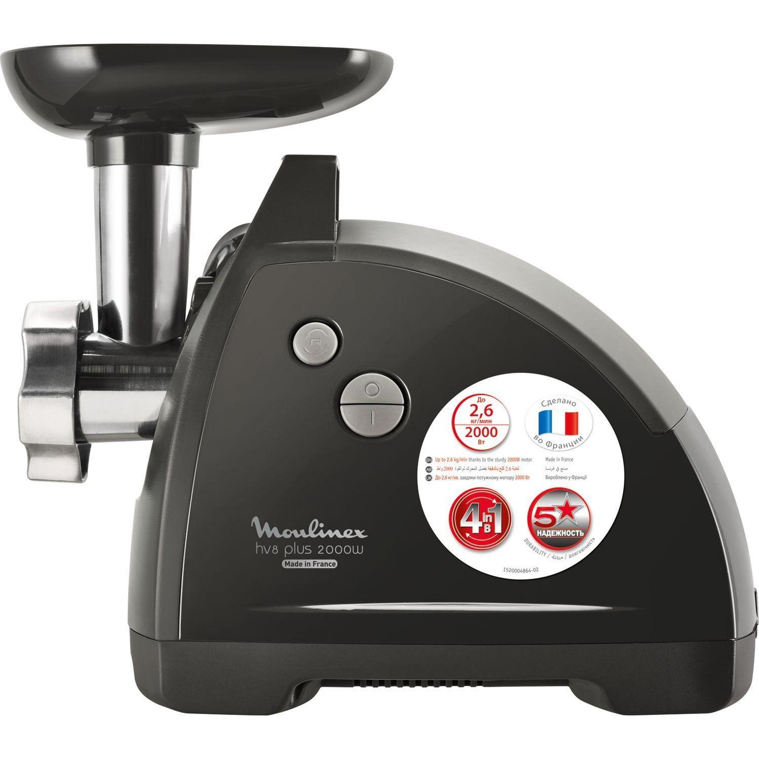 Мясорубка MOULINEX ME112832, 1600 Вт, производительность 1,9 кг / мин, 5 насадок, реверс, пластик, черная, 8010000864