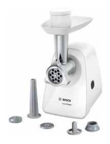 Мясорубка BOSCH MFW67440 Мясорубка 700Вт, 3.5 кг / мин, реверс, насадки: шинковка, кеббе, колбас