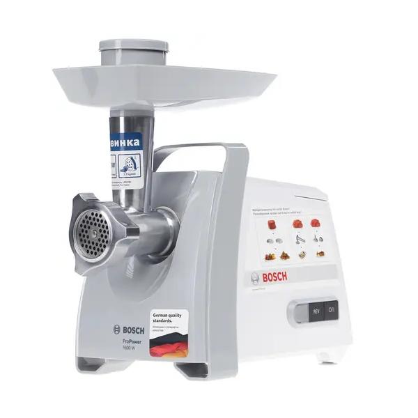Мясорубка Bosch / 500 / 1600Вт, комплект: 2 диска, кебаб, колбаски, цвет: белый / серый фронт