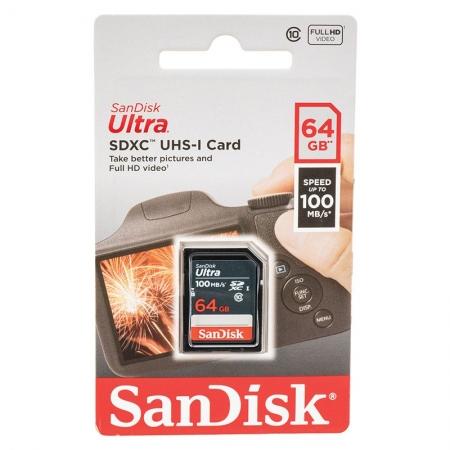 Карта памяти SDXC 64Gb SanDisk Ultra Class 10, UHS-I U1, 100 Мб / с (SDSDUNR-064G-GN3IN)