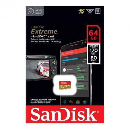 Карта памяти Micro SDXC 64Gb SanDisk Extreme U3 V30 A2 170Мб / с без адаптера (SDSQXAH-064G-GN6MN)