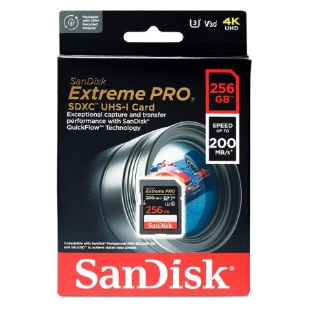 Карта памяти SanDisk Extreme Pro SD UHS I 256GB Card for 4K Video for DSLR and Mirrorless Cameras 200MB / s Read & 140MB / s Write