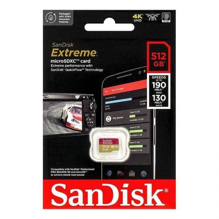 Карта памяти SanDisk Extreme microSD UHS I Card 512GB for 4K Video on Smartphones Action Cams & Drones 190MB / s Read, 130MB / s Write
