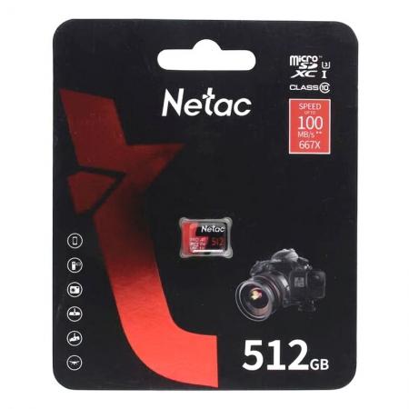 Носитель информации Netac P500 Extreme PRO 512GB MicroSDXC V30 / A1 / C10 up to 100MB / s, retail pack card only