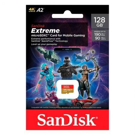 Карта памяти Micro SDXC 128Gb SanDisk Extreme U3 V30 A2 190 / 90 Мб / с (SDSQXAA-128G-GN6GN)