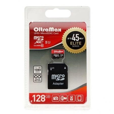 Карта памяти Micro SDXC 128Gb OltraMax Elite U1 45 Mb / s + адаптер SD (OM128GCSDXC10UHS-1-ElU1)