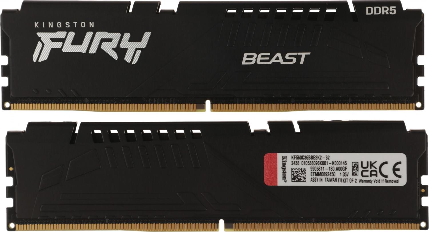 Память DDR5 2x32GB 6000MHz Kingston KF560C36BWEK2-64 Fury Beast RTL Gaming PC5-48000 CL36 DIMM 288-pin 1.35В dual rank с радиатором Ret