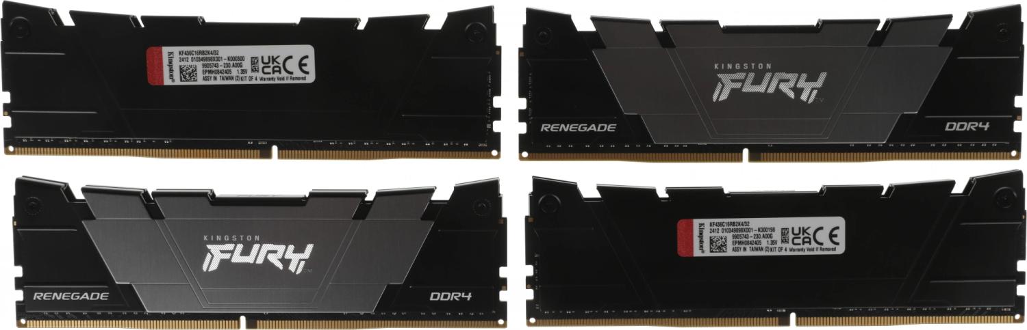 Память DDR4 2x8GB 4800MHz Kingston KF448C19RB2K2 / 16 Fury Renegade Black RTL Gaming PC4-38400 CL19 DIMM 288-pin 1.5В kit single rank с радиатором Ret