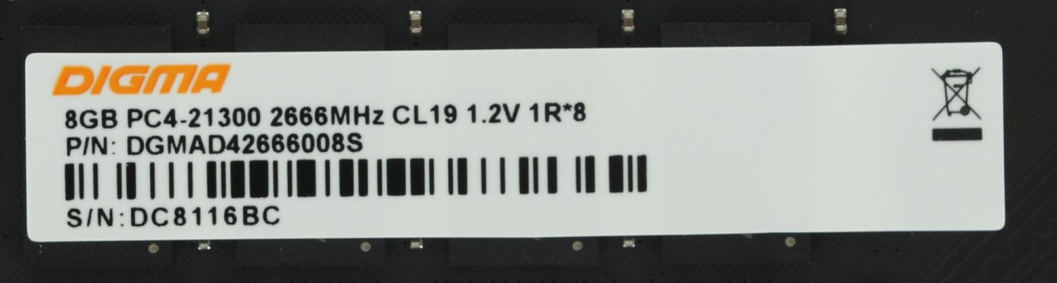 Digma DDR4 DIMM 8GB DGMAD42666008S PC4-21300, 2666MHz