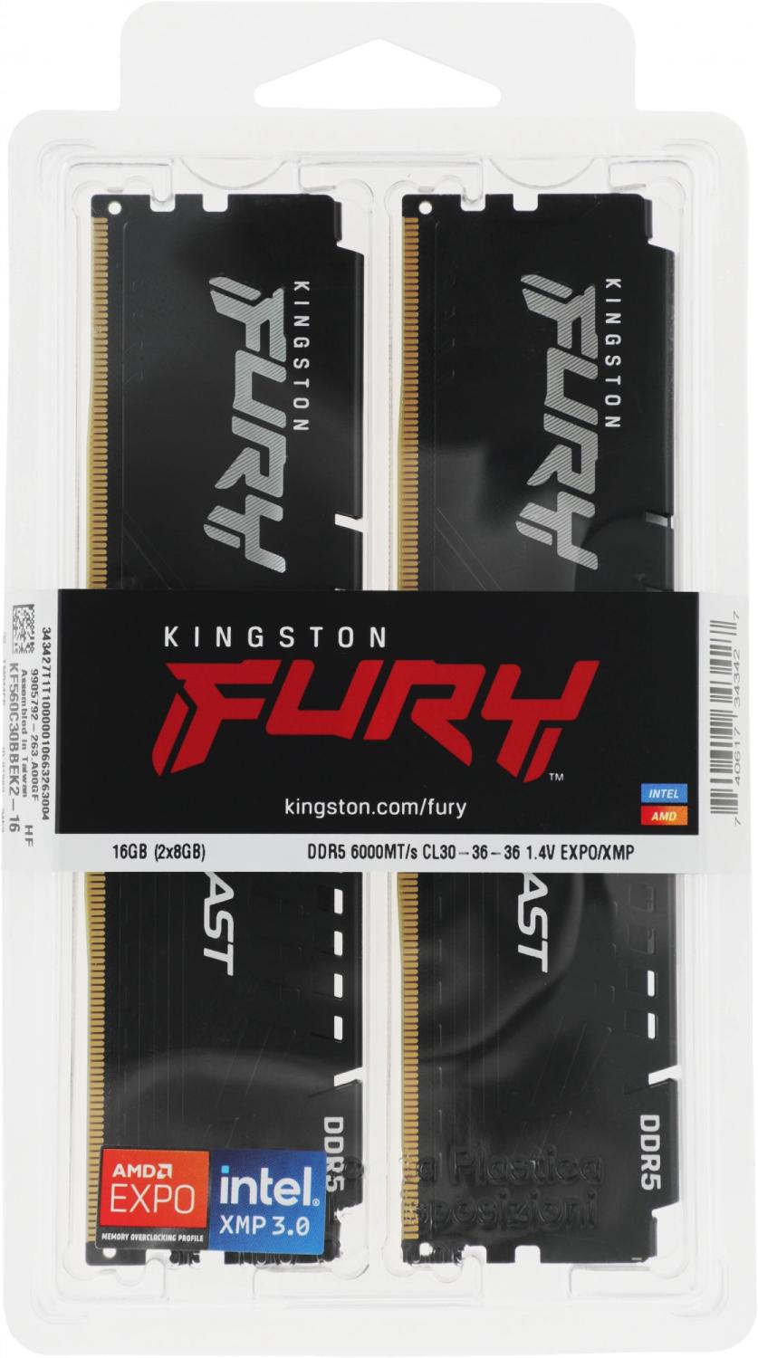 Память DDR5 2x8GB 6000MHz Kingston KF560C30BBEK2-16 Fury Beast Black Expo RTL Gaming PC5-48000 CL30 DIMM 288-pin 1.4В kit single rank с радиатором Ret