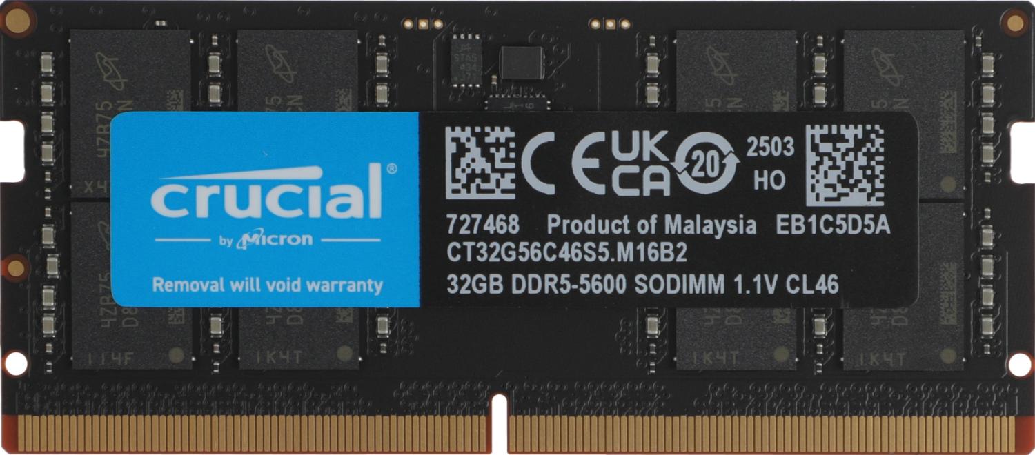 Память DDR5 32GB 5600MHz Crucial CT32G56C46S5 RTL PC5-44800 CL46 SO-DIMM 262-pin 1.1В single rank Ret