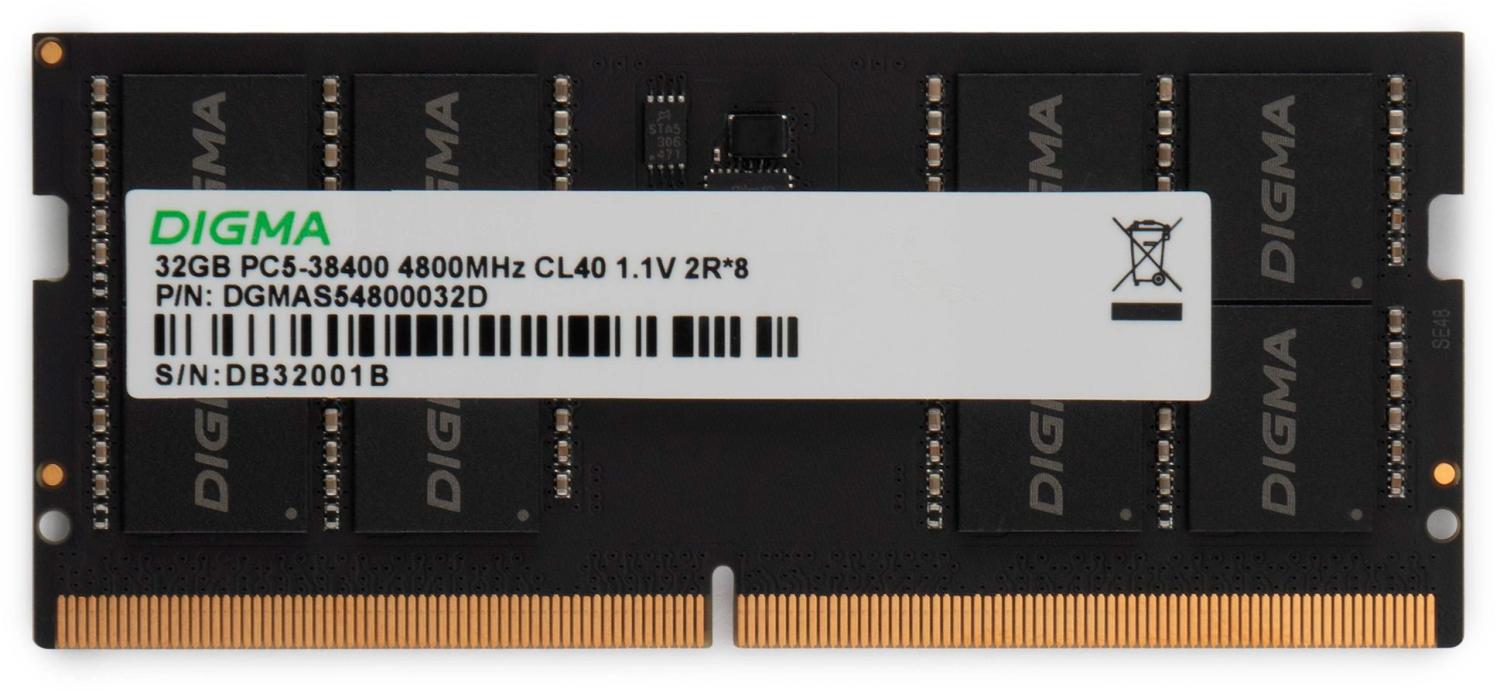 Память DDR5 32GB 4800MHz Digma DGMAS54800032D RTL PC5-38400 CL40 SO-DIMM 262-pin 1.1В dual rank Ret