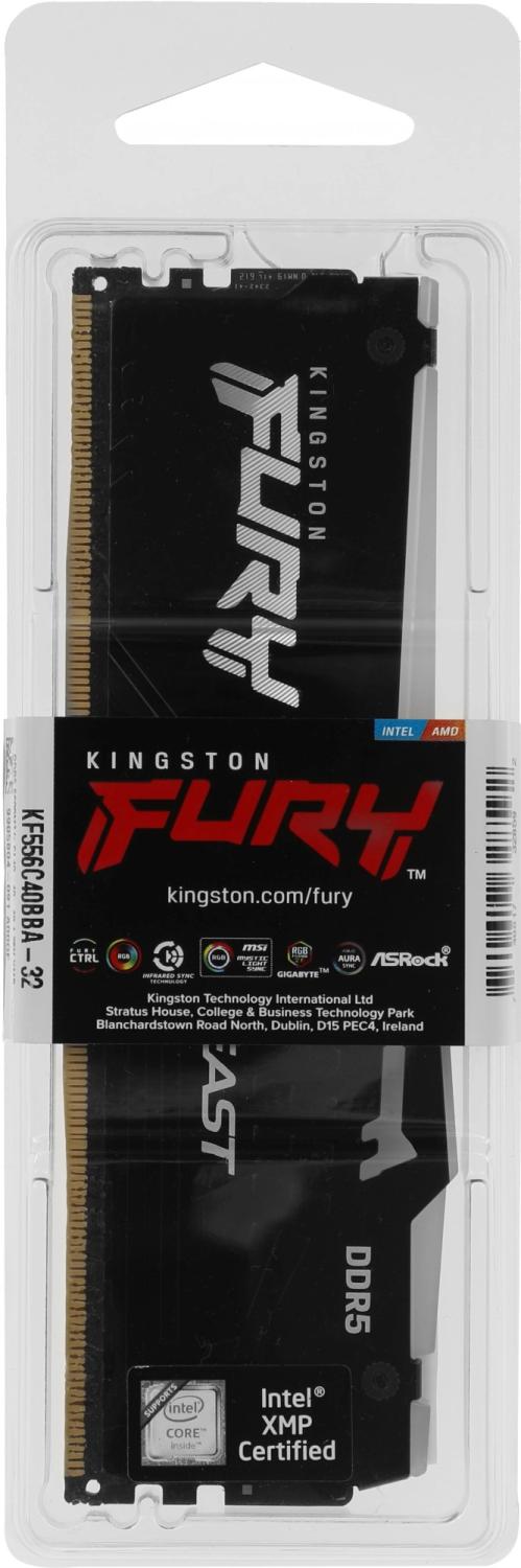 Память DDR5 32GB 5600MHz Kingston KF556C40BBA-32 Fury Beast XMP RGB RTL Gaming PC5-44800 CL40 DIMM 288-pin 1.25В dual rank с радиатором Ret