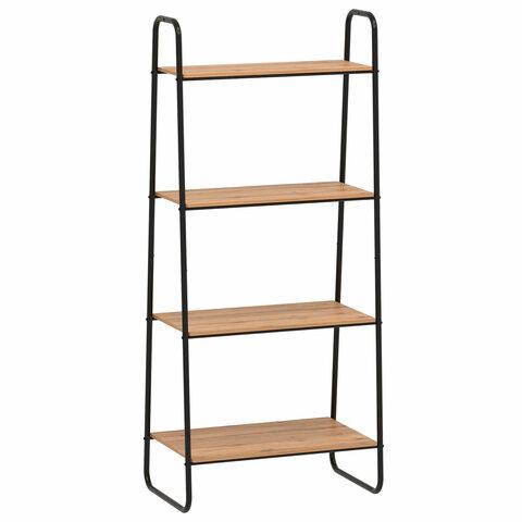 Стеллаж на металлокаркасе "Скандинавия-24", 650х385х1470 мм, 4 полки ЛДСП, черный / дуб, CТCП24 Ч