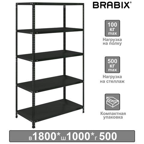 Стеллаж металлический BRABIX "MS Plus-200 / 50-5", 2000х1000х500 мм, 5 полок, регулируемые опоры, 291110, S241BR165502