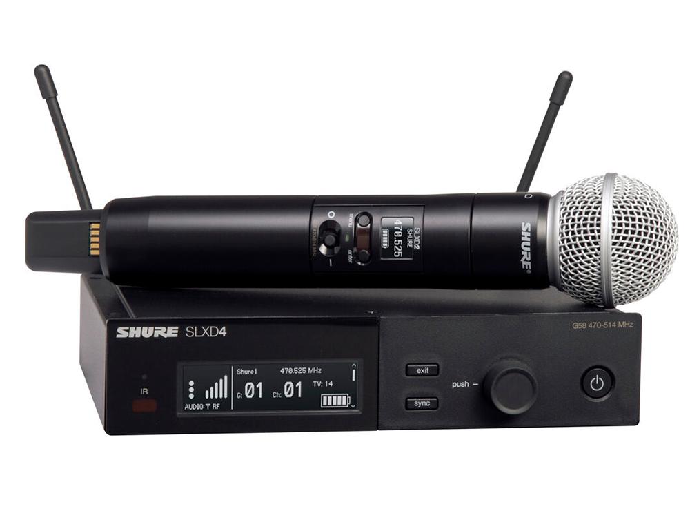 Микрофонная система SHURE [SLXD24E / SM58-H56] беспроводная, одноканальная, ручной передатчик SM58. Частота UHF 518-562 МГц
