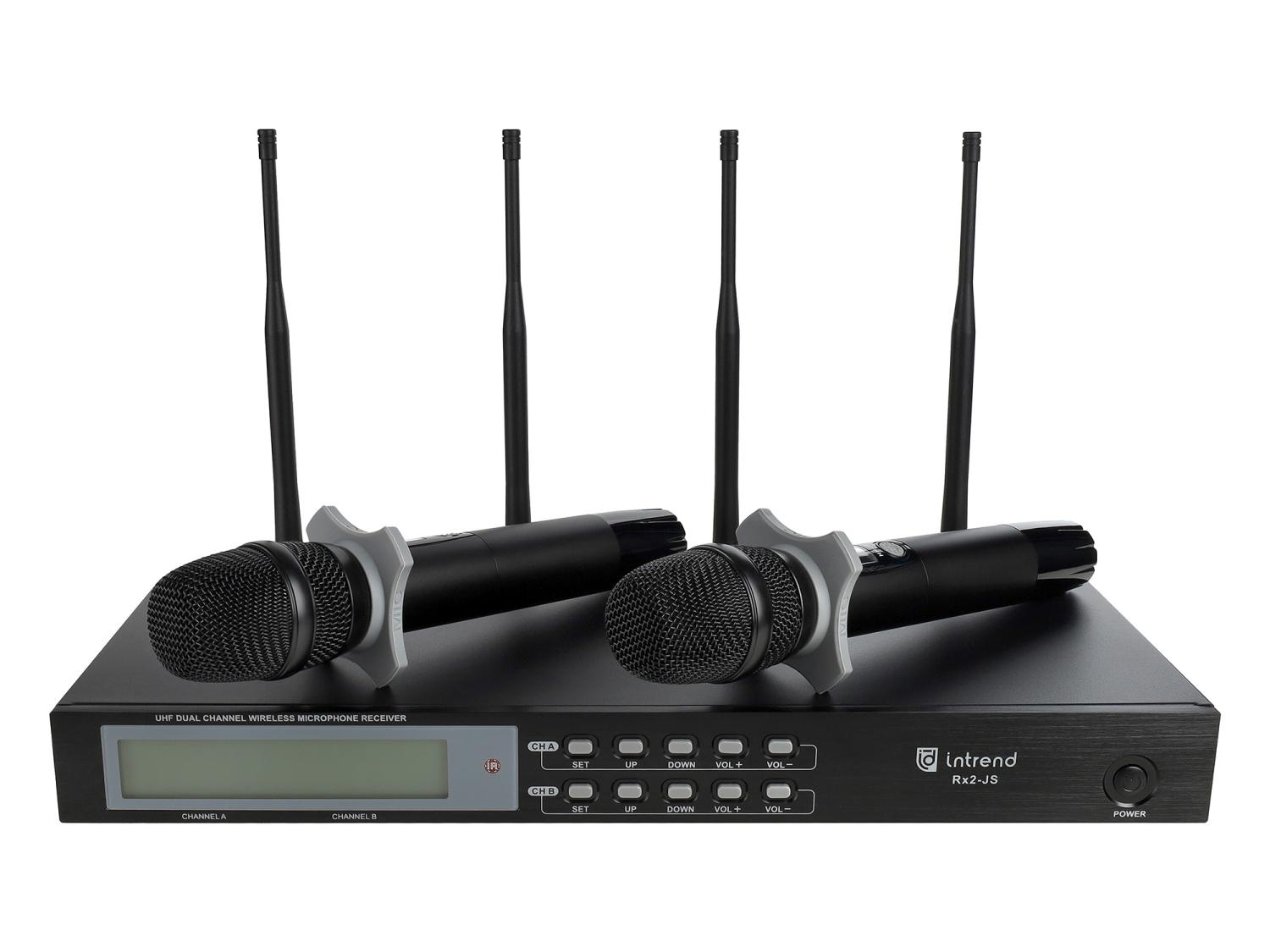 Микрофонная система Intrend [ITWMIC-JS-HH] цифровая, беспроводная, двухканальная. 2 ручных микрофона. Диапазон UHF. LCD дисплей. True Diversity.