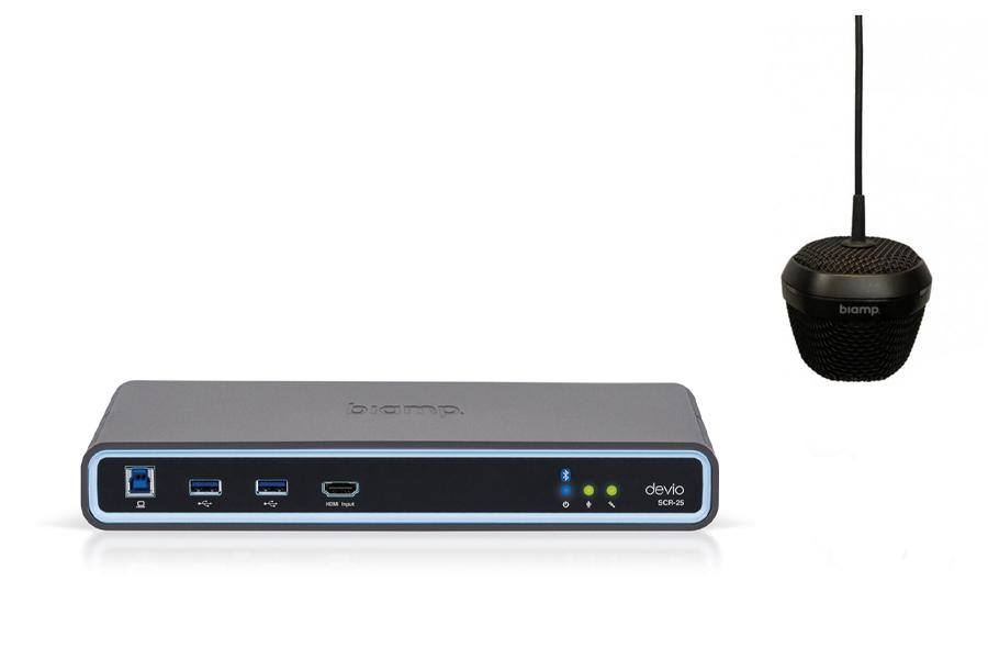 Микрофон с аудиопроцессором BIAMP [DevioSCR-25C(Black)] В комплекте:аудиопроцессор(хаб)SCR-25(Bluetooth) 1шт. +подвесной микрофон DCM-1 1 шт:технология Beamtracking;3 зоны по 120°;3хLED mute индикаторы; 2хRJ45(доп.DСM-1 по daisy-chain-max.2 мик.).Чёрный