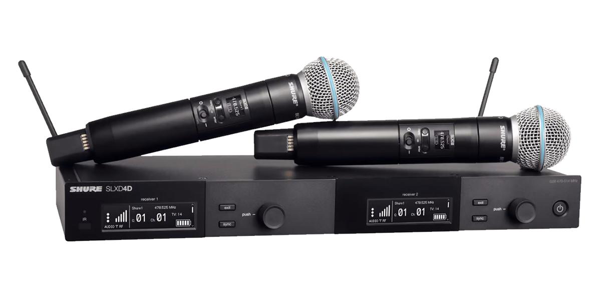 Цифровая двухканальная система SLX-D SHURE [SLXD24DE / B58-H56] с ручными передатчиками SLXD2, диапазон 518-562 МГц, суперкардиоидный капсюль Beta 58A