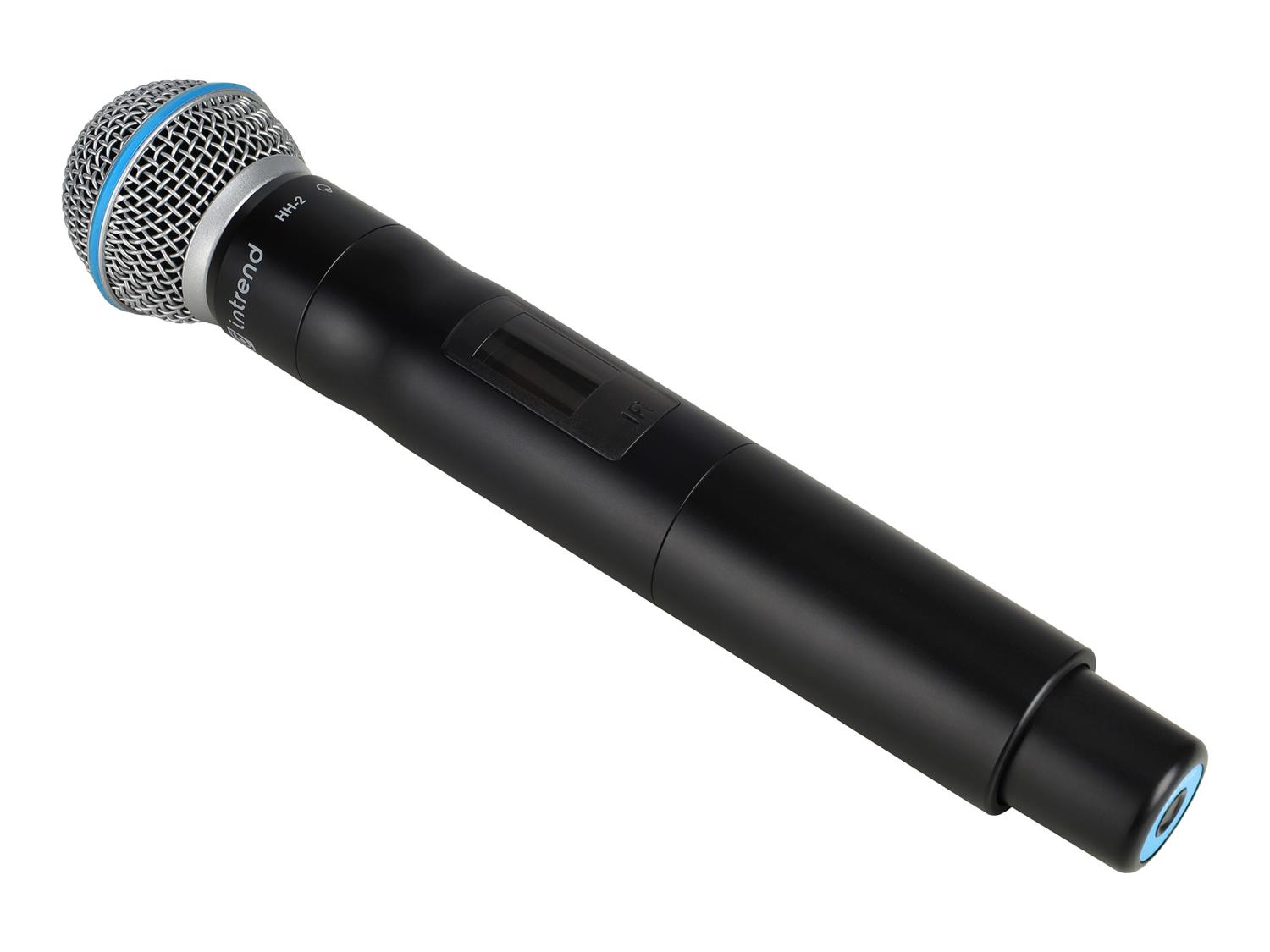 Микрофон Intrend [ITWMIC-HH-2] беспроводной ручной, с улучшеным динамическим капсюлем. Совместим с микрофонными картриджами SHURE. Питание от батареек тип АА. Подходит для приемника Rx2-1S