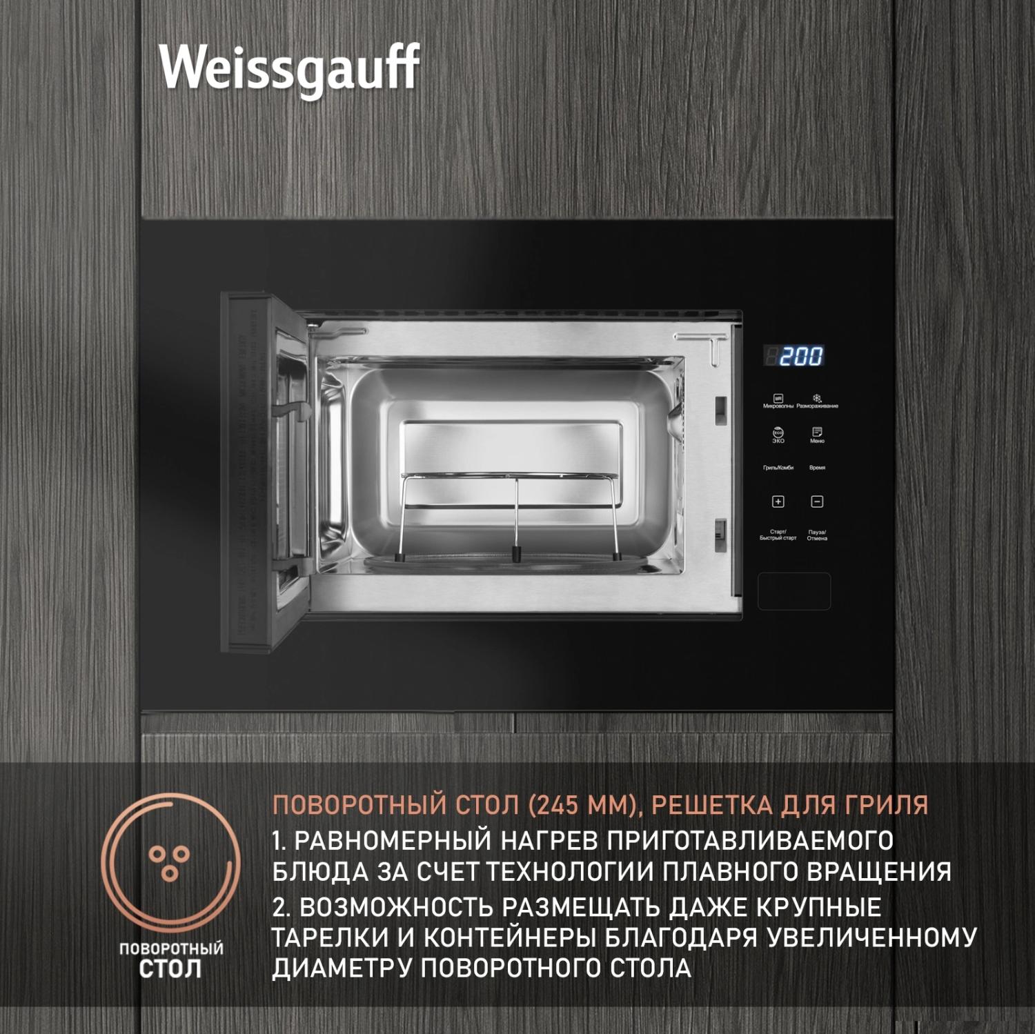 Микроволновая печь Weissgauff HMT-257 25л. 900Вт черный / нержавеющая сталь (встраиваемая)