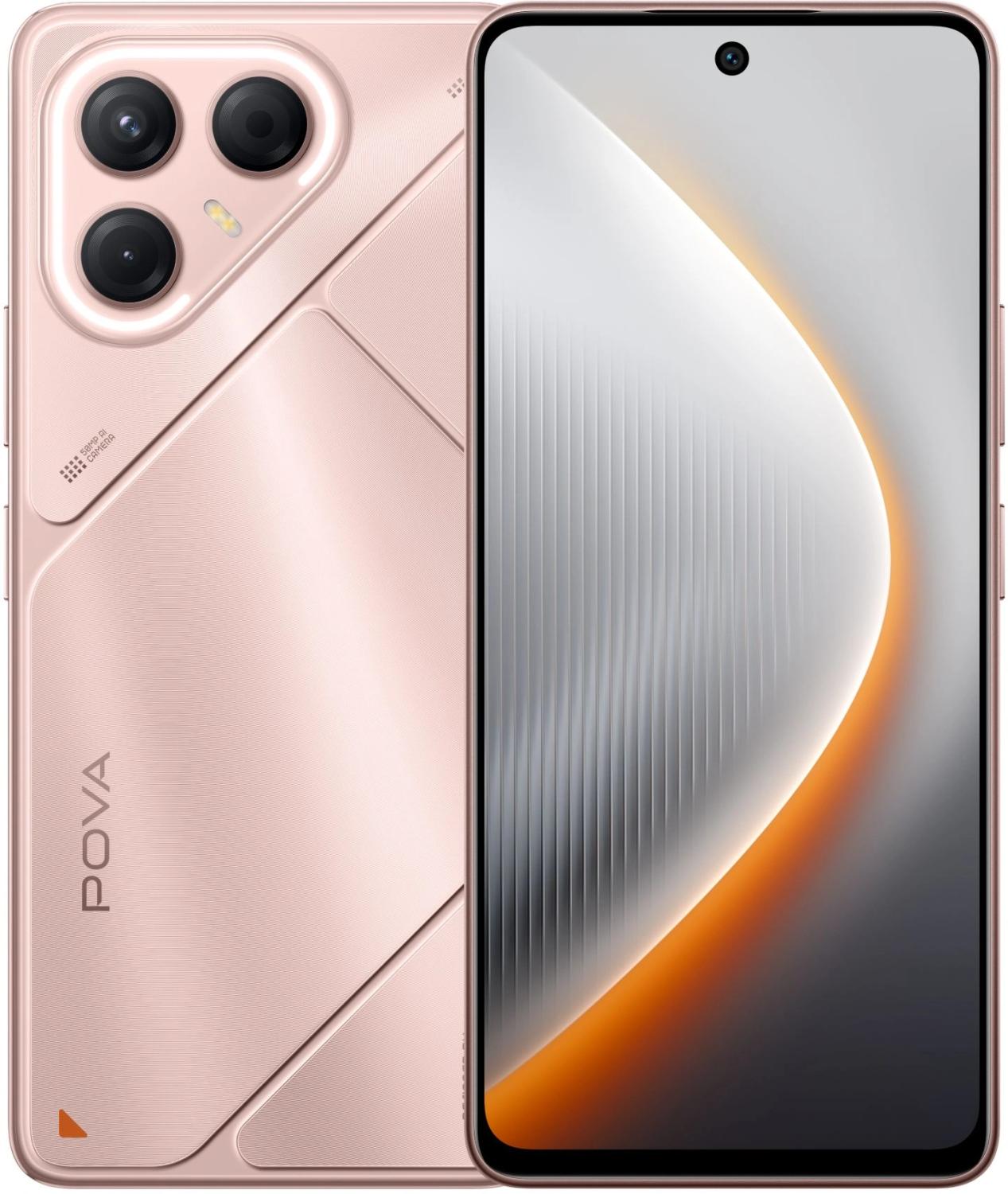 Смартфон Tecno Pova 7 5G 128Gb 8Gb розовый моноблок 3G 4G 2Sim 6.78" 1080x2460 Android 15 50Mpix 802.11 a / b / g / n / ac / ax NFC GPS GSM900 / 1800 Protect microSD max1024Gb