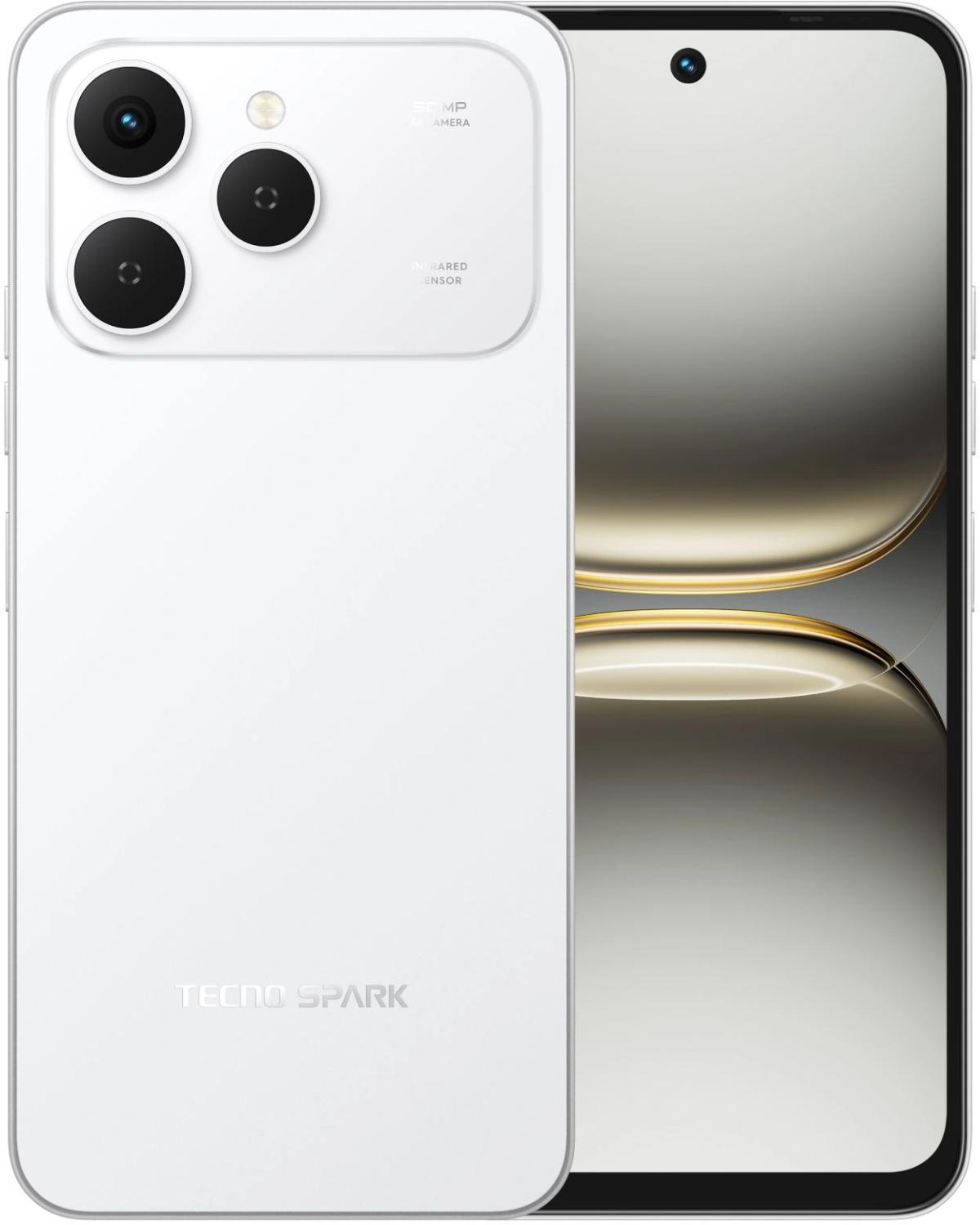 Смартфон Tecno Spark 40 256Gb 8Gb белый моноблок 3G 4G 2Sim 6.67" 720x1600 Android 15 50Mpix 802.11 a / b / g / n / ac / ax NFC GPS GSM900 / 1800 GSM1900 Protect FM microSD max1024Gb