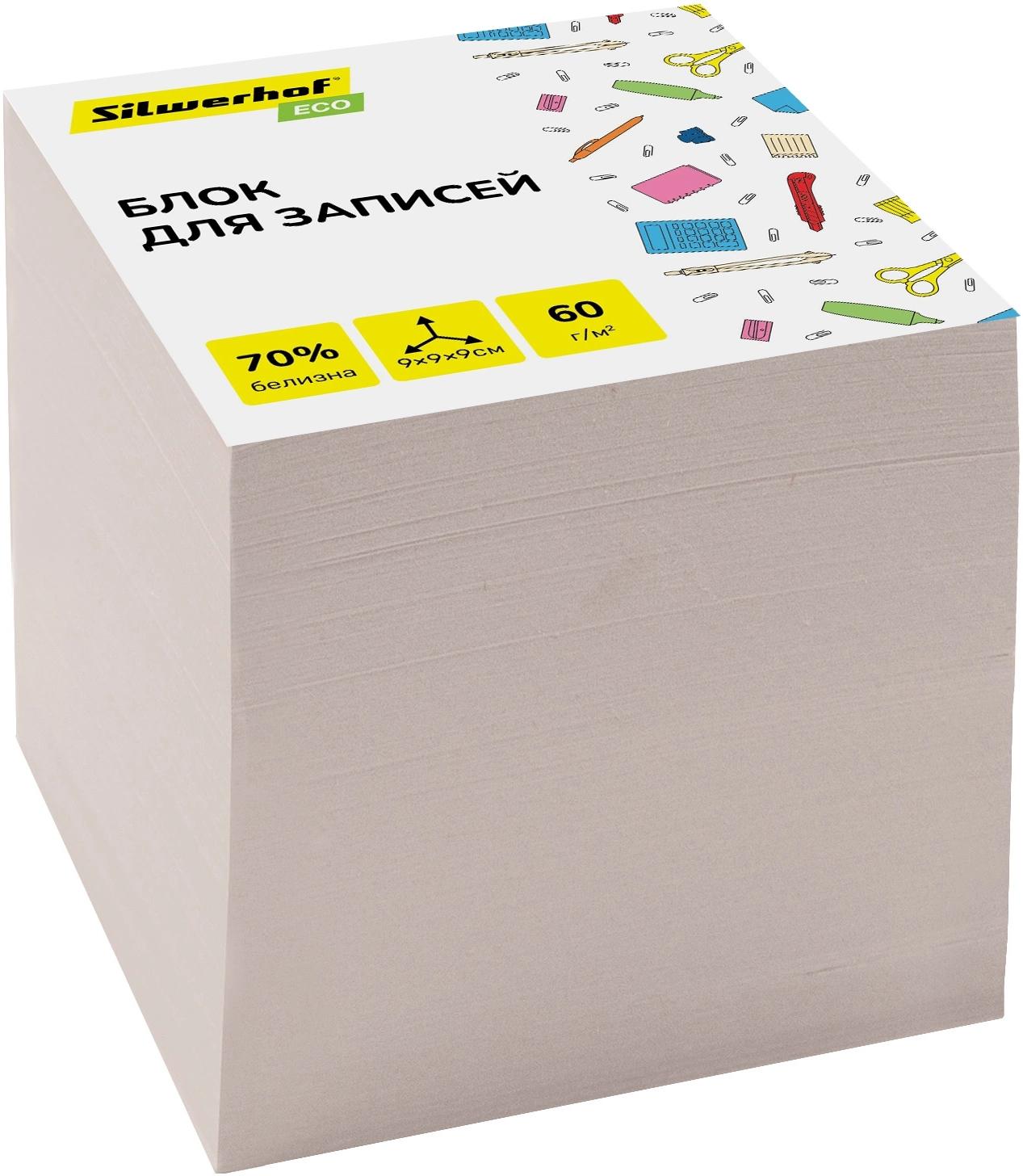 Блок для записей бумажный Silwerhof Eco Эконом 90x90x90мм 60г / м2 70% белый