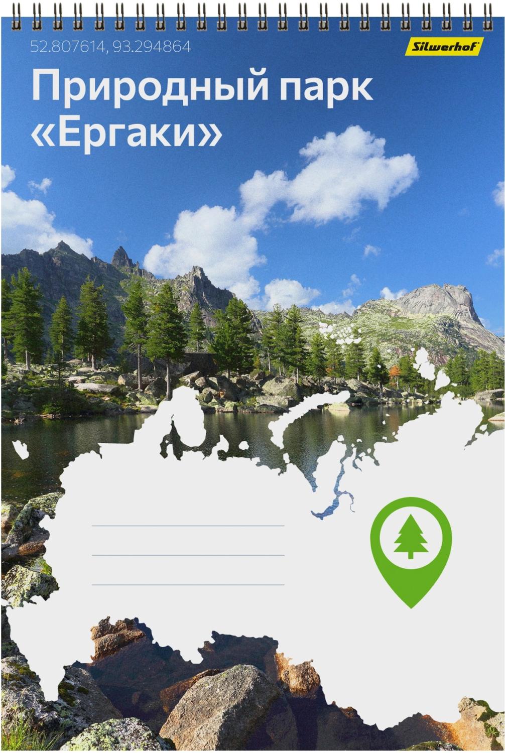 Блокнот Silwerhof КООРДИНАТЫ РОССИИ A4 обложка картон 80л клетка гребень Природный парк Ергаки