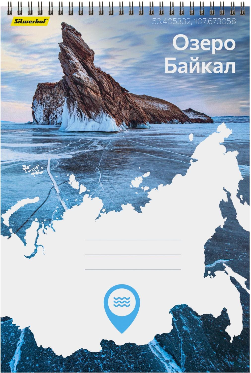 Блокнот Silwerhof КООРДИНАТЫ РОССИИ A4 обложка картон 80л клетка гребень Озеро Байкал